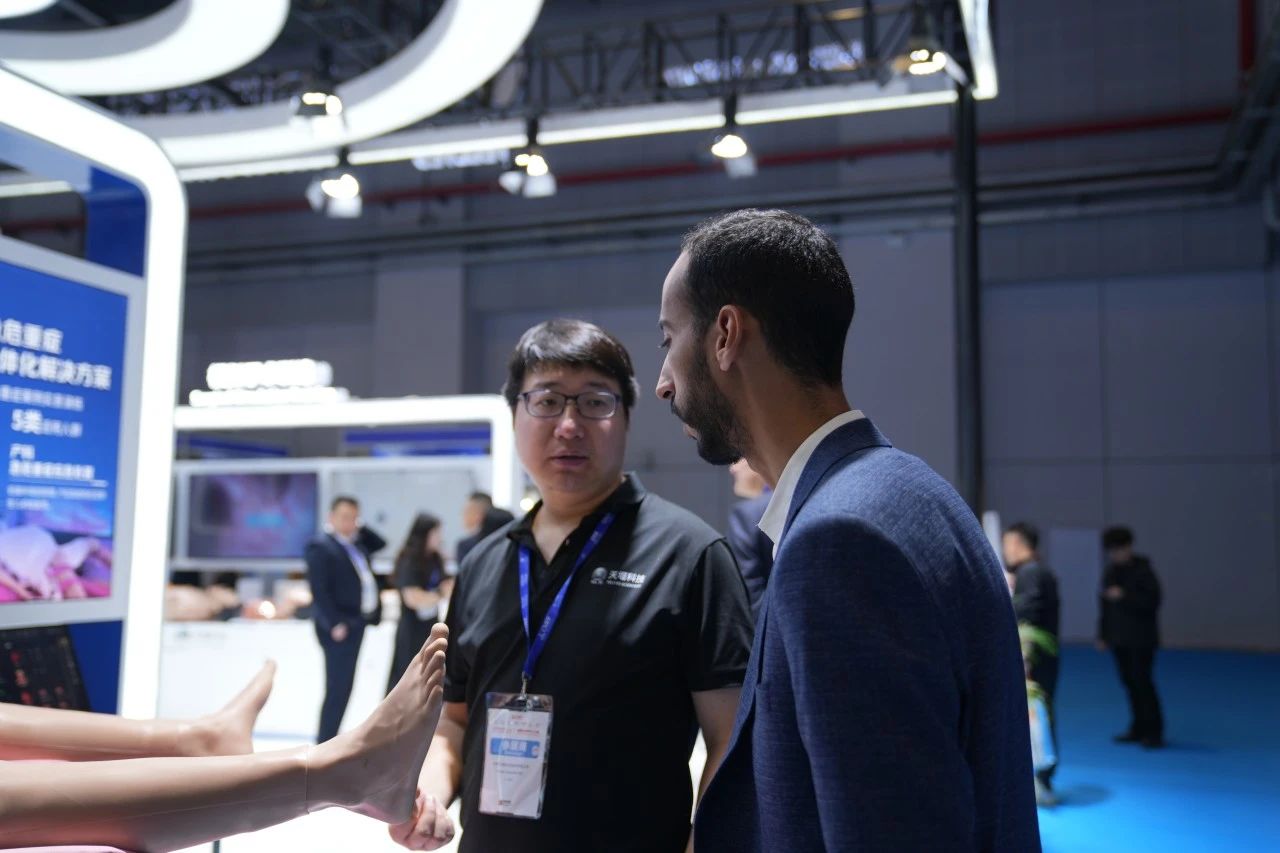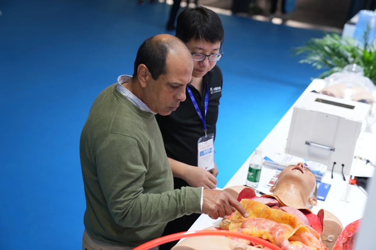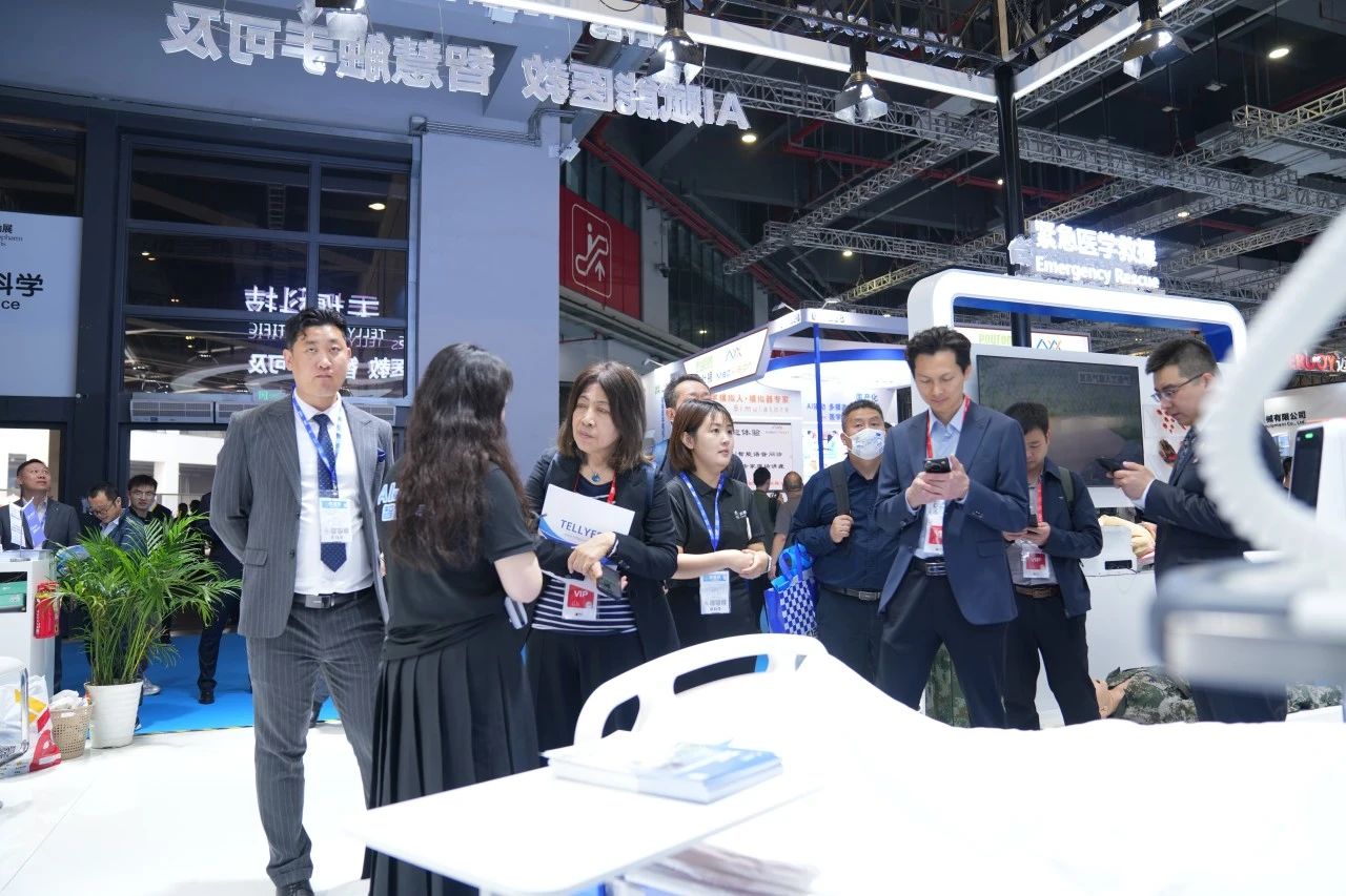 Focused on the Tellyes exhibition area, foreign guests showed great interest in the deep application of AI-based medical education platform and high-fidelity training system. After thoroughly understanding, they all gave consistent praise to the products.