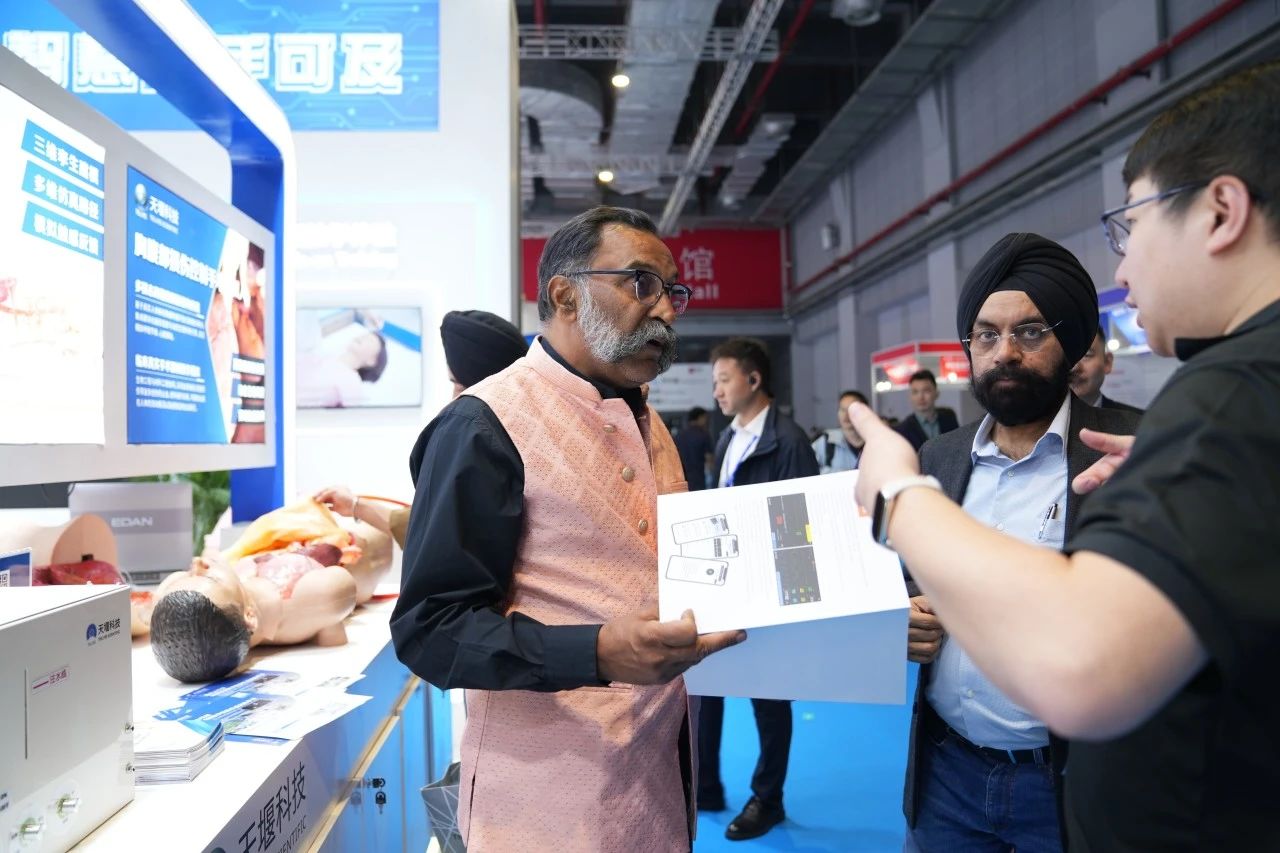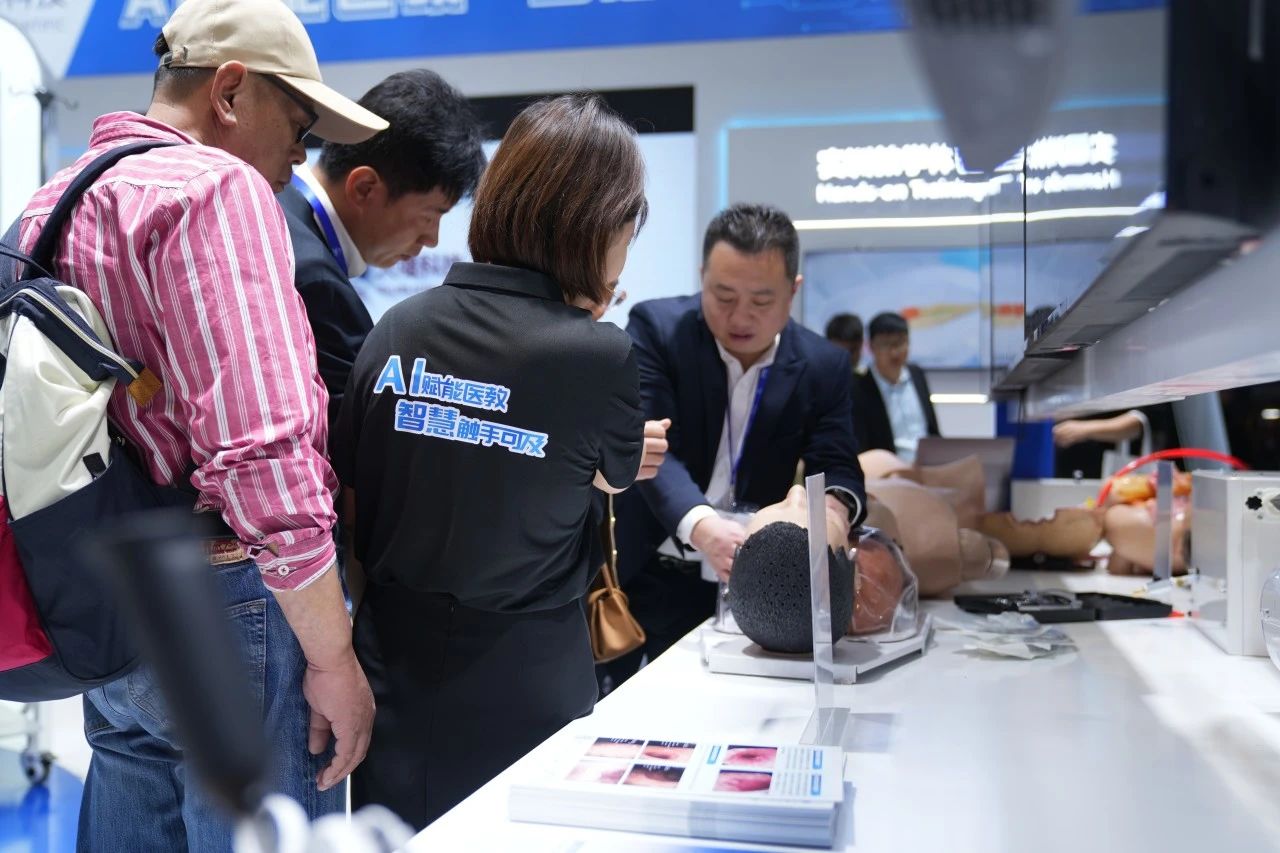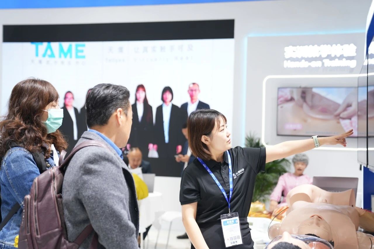 Focused on the Tellyes exhibition area, foreign guests showed great interest in the deep application of AI-based medical education platform and high-fidelity training system. After thoroughly understanding, they all gave consistent praise to the products.