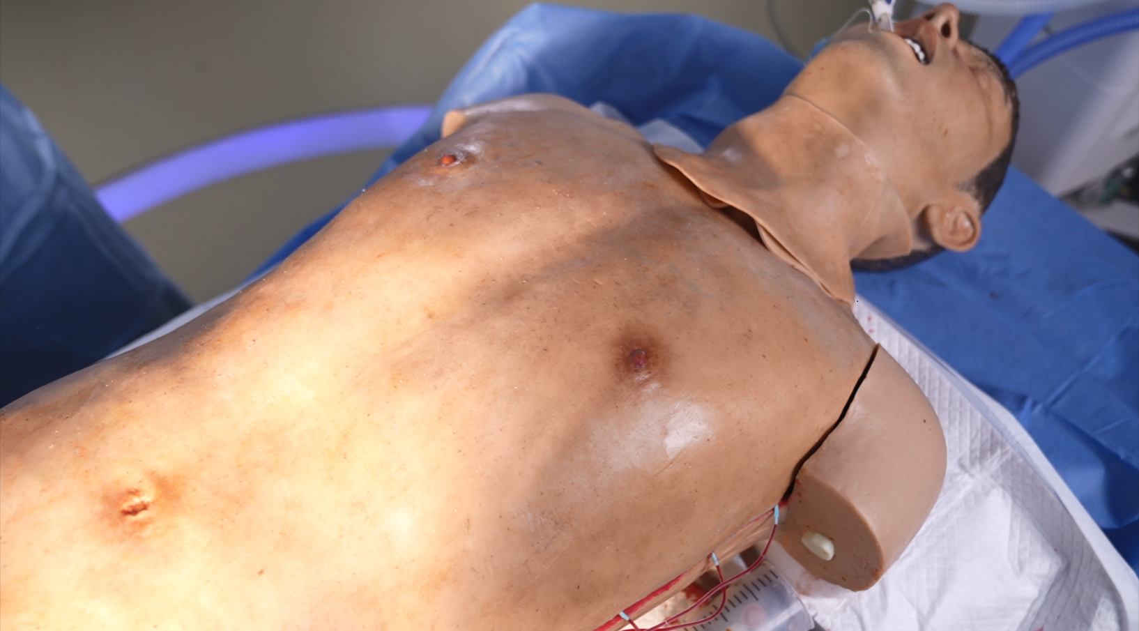 This highly realistic simulator is designed for immersive training in diverse emergency scenarios, enhancing clinicians' skills in thoracoabdominal damage control surgery. Featuring true-to-life anatomical structures with realistic appearance and texture, it accurately replicates the adjacent relationships of thoracic and abdominal organs, offering an unparalleled surgical training experience.