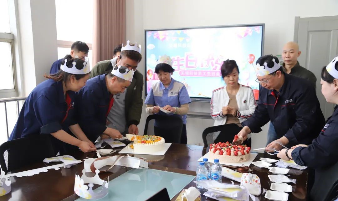 工会主席王志永代表天堰工会给寿星们致贺词,他首先祝福大家生日快乐、家庭美满、工作顺利。接着他强调,由于天堰所有职工在这些年的努力奋斗和辛勤付出,使公司业务逐年提高,人员规模也在慢慢增加,工会的力量也得以壮大,使得工会有更多的人员和经费为广大员工组织更丰富的活动;每年的生日,是我们一年中非常有意义的一天,因此,把生日会办好,是今年公司工会的一个重要任务;与去年相比,今年的生日会有了明显变化,组织更严谨了,活动更丰富了,蛋糕更大更美味了,对员工的吸引力也更高了;借助生日会的机会,不同部门的职工可以聚在一起,相互认识,相互了解,更可以提升公司的凝聚力。